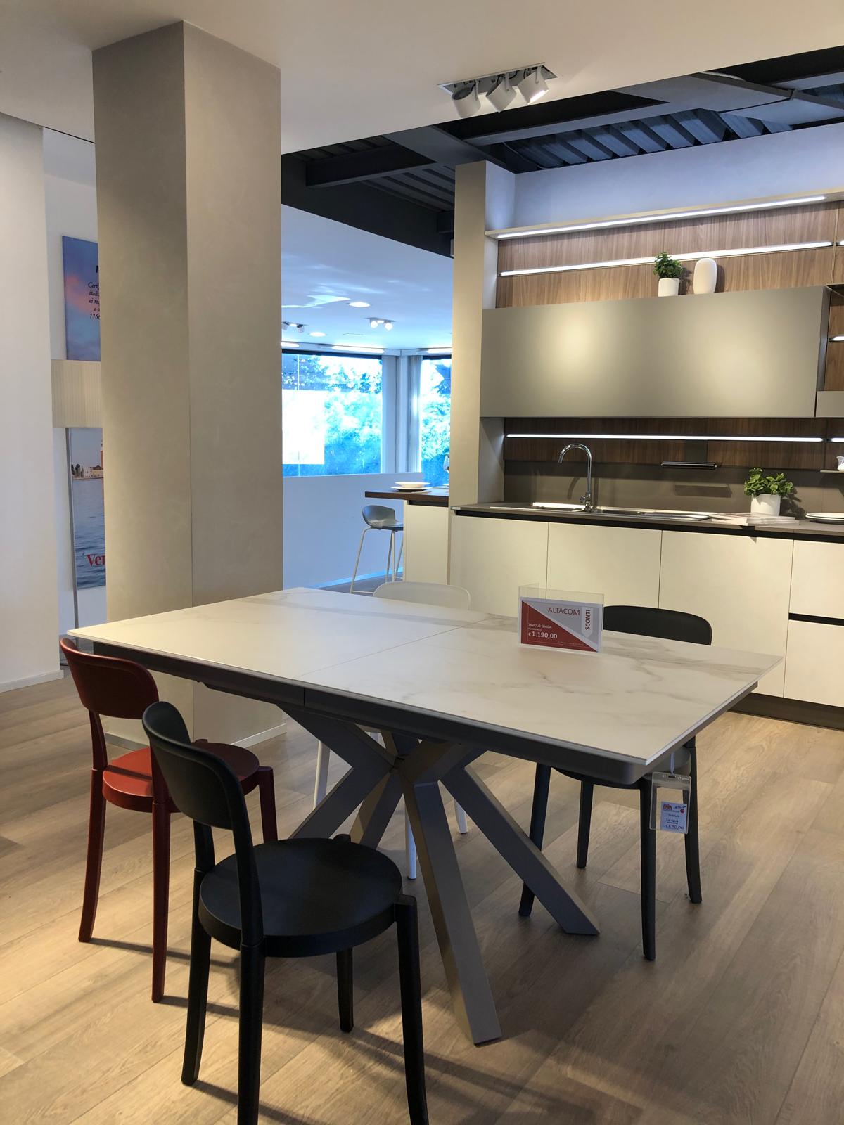 Tavolo allungabile modello Teorema di Altacom con top ed allunga in nobilitato effetto marmo venato. L140x90 allungabile a L200 €599 Occasione di esposizione
