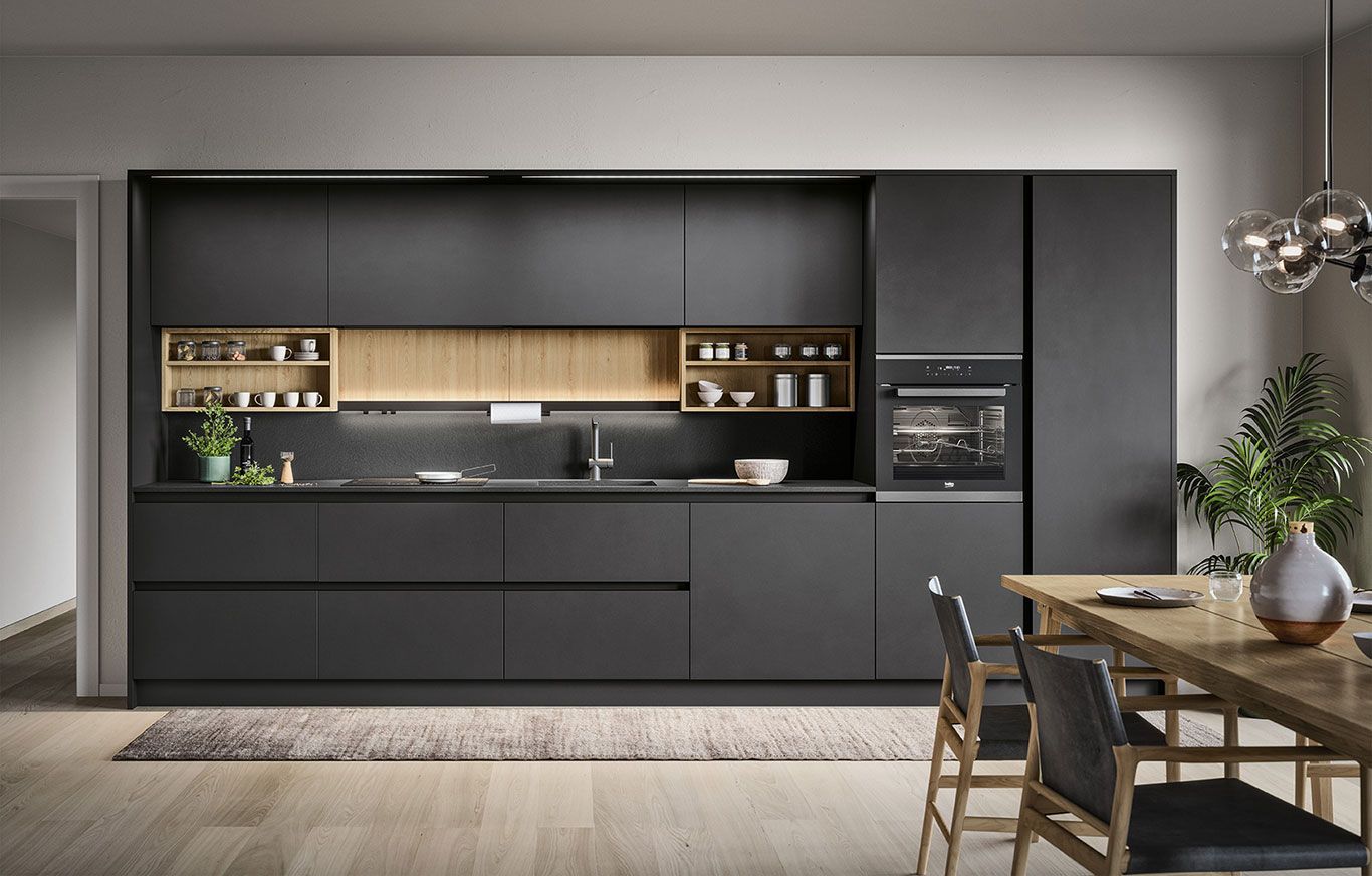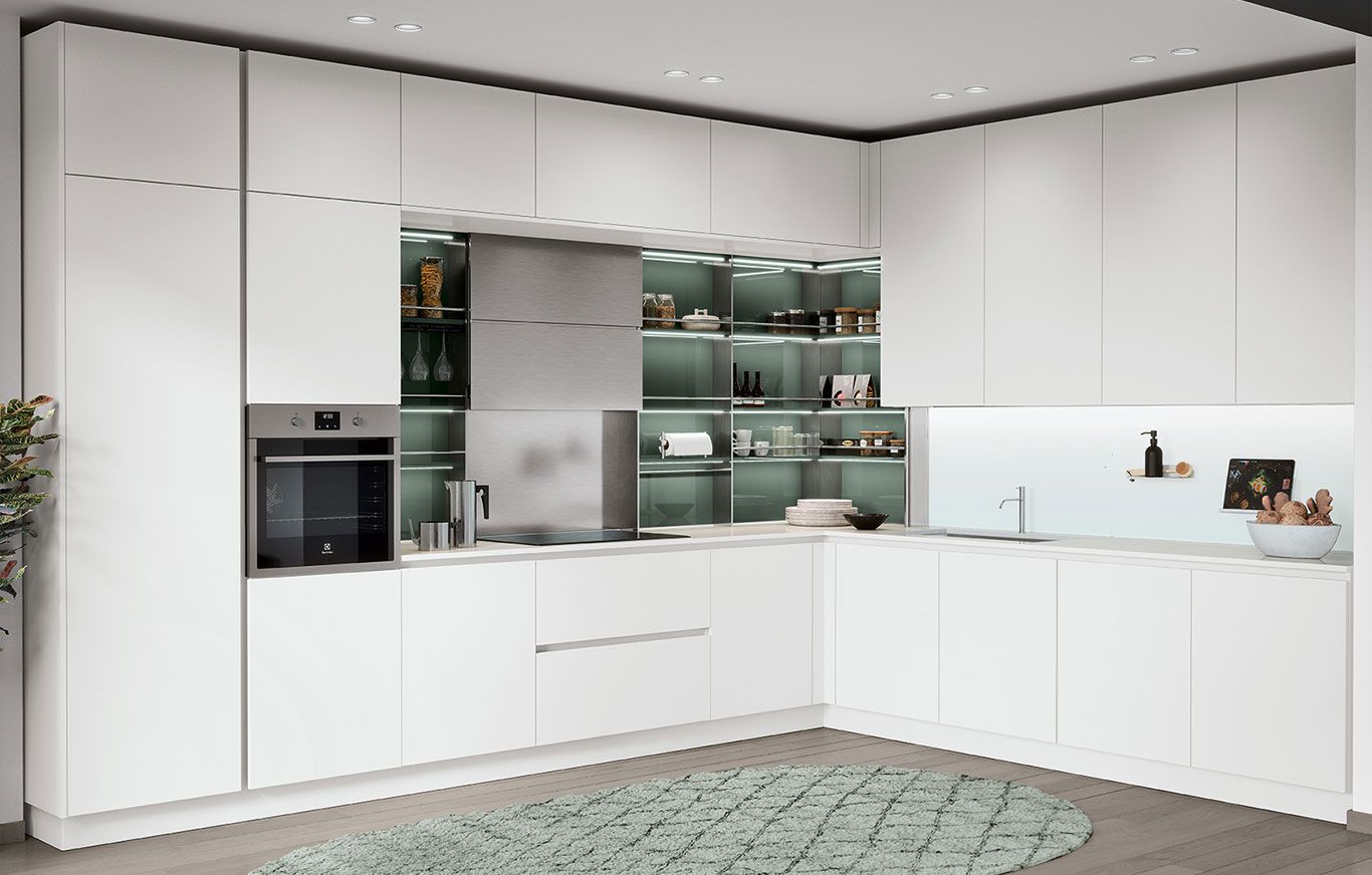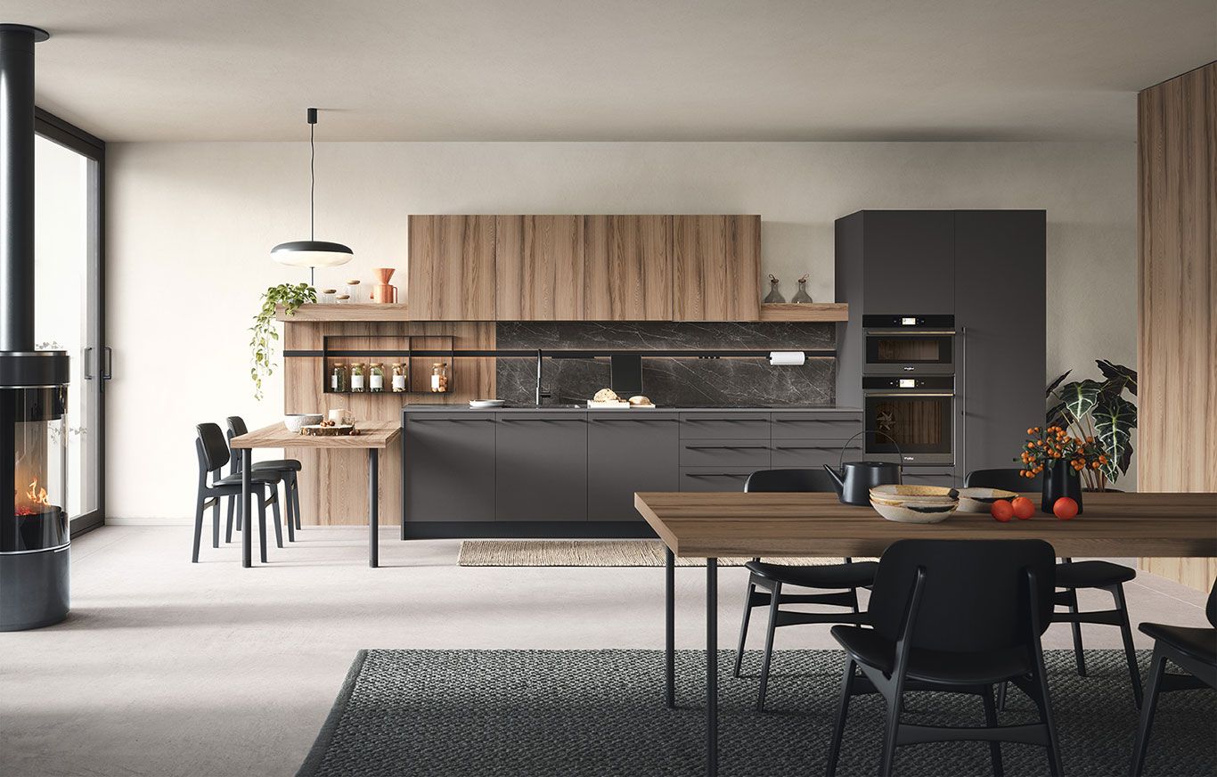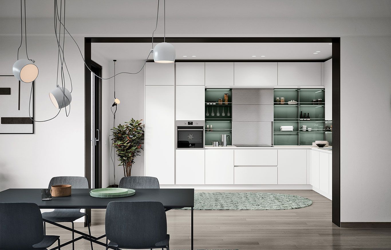 Uno spazio accogliente, moderno e funzionale: la comodità in cucina trova posto con una forma dallo stile lineare ed essenziale.