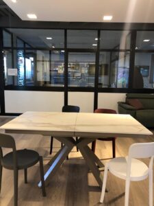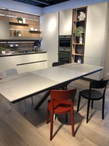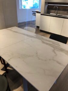 Tavolo allungabile modello Teorema di Altacom con top ed allunga in nobilitato effetto marmo venato. L140x90 allungabile a L200 €599 Occasione di esposizione